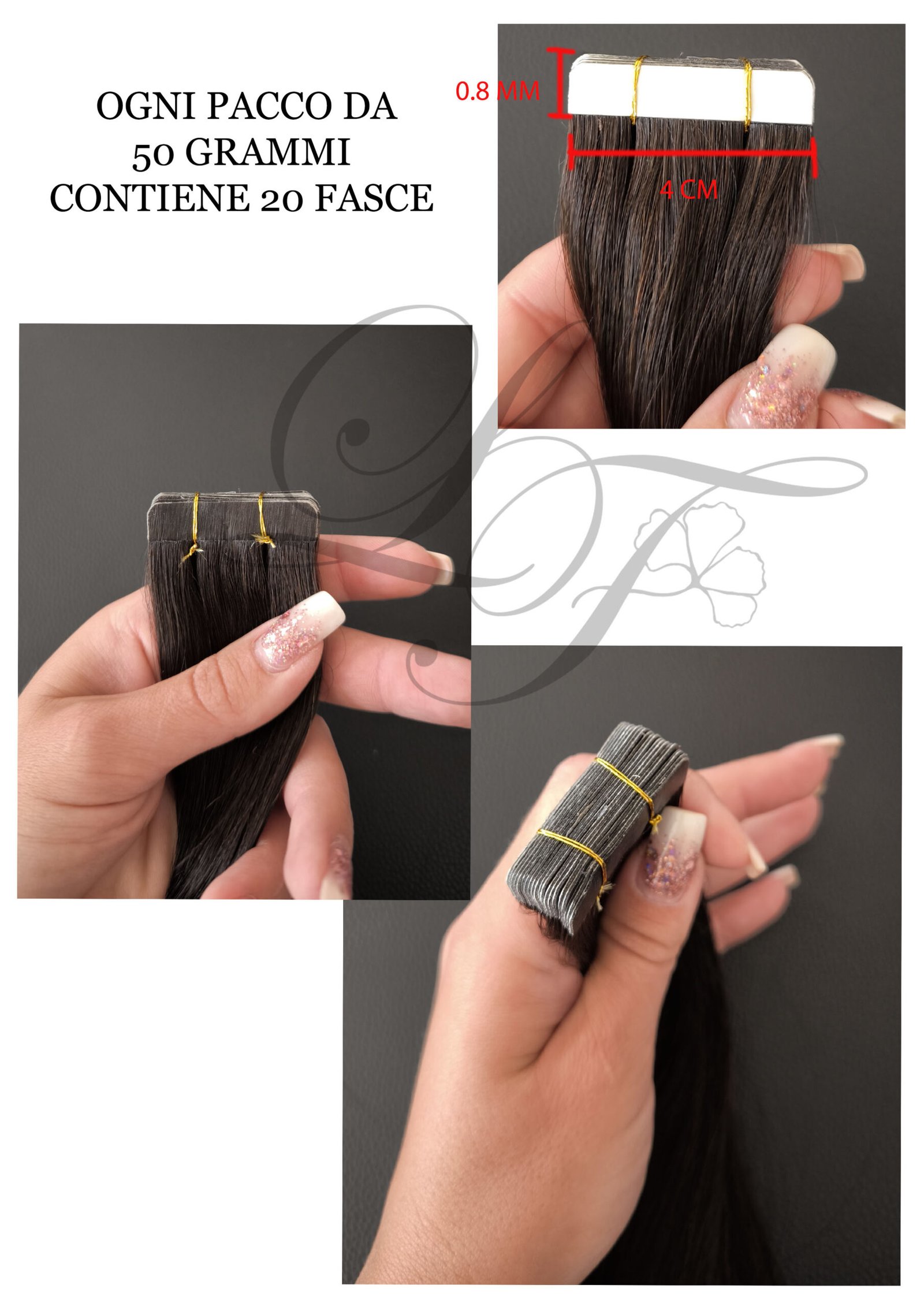 Il sistema tape-in, grazie al sottile strato adesivo, garantisce un'applicazione rapida, sicura e impercettibile al tatto. Leggere e flessibili, seguono ogni movimento della testa, offrendo un’esperienza di bellezza confortevole e raffinata.